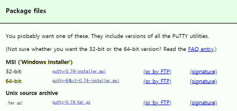 각자 입맛에 맞는 환경을 선택해 설치하고 PuTTY를 실행합니다.