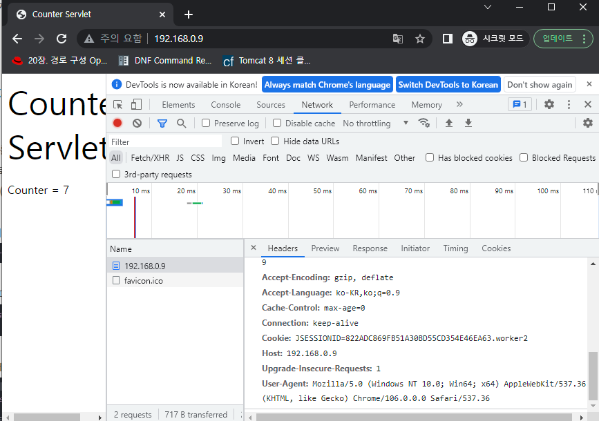 해당 사용자는 2번으로 접속된 것을 확인하였고 세션의 가용성이 유지되는지 확인하기 위해 WAS 2번을 종료하고 브라우저를 확인합니다.