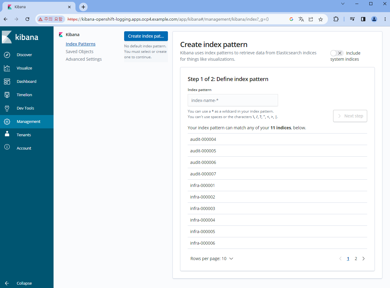 Kibana 인덱스 패턴(Index Pattern) 정의