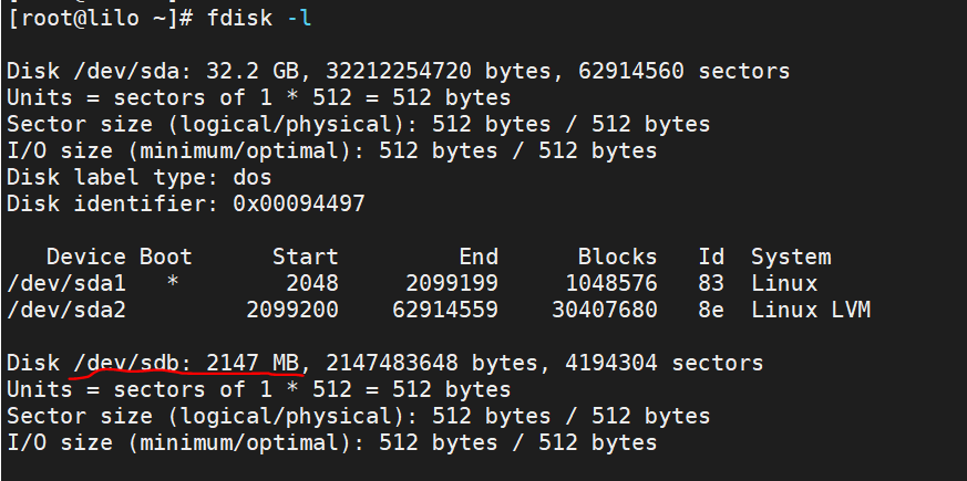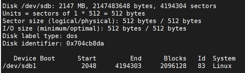 # fdisk /dev/sdb