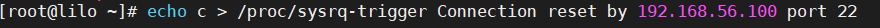 ☞ sysrq를 이용한 크래쉬로 인해 패닉 상태에 빠진 것으로 예상됩니다.