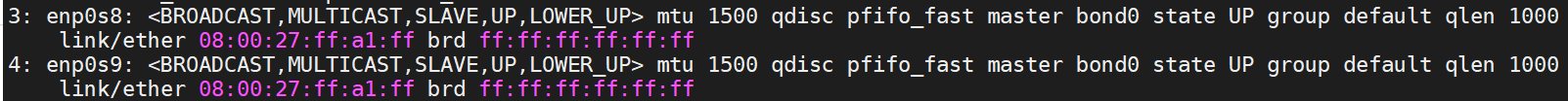SLAVE들이 정상적으로 잡혀있고 UP 상태인 것을 확인할 수 있습니다. 본딩 역시 UP 상태와 Mode 1인 것을 볼 수 있습니다. 속도는 1G를 지원합니다.