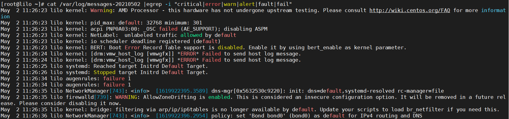 # cat /var/log/messages-20210502 |egrep -i "critical|error|warn|alert|fault|fail"