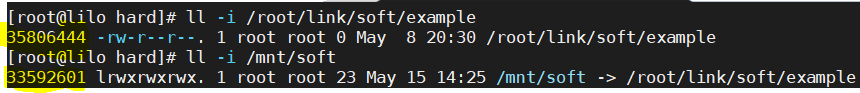 # ln -s /root/link/soft/example /mnt/soft