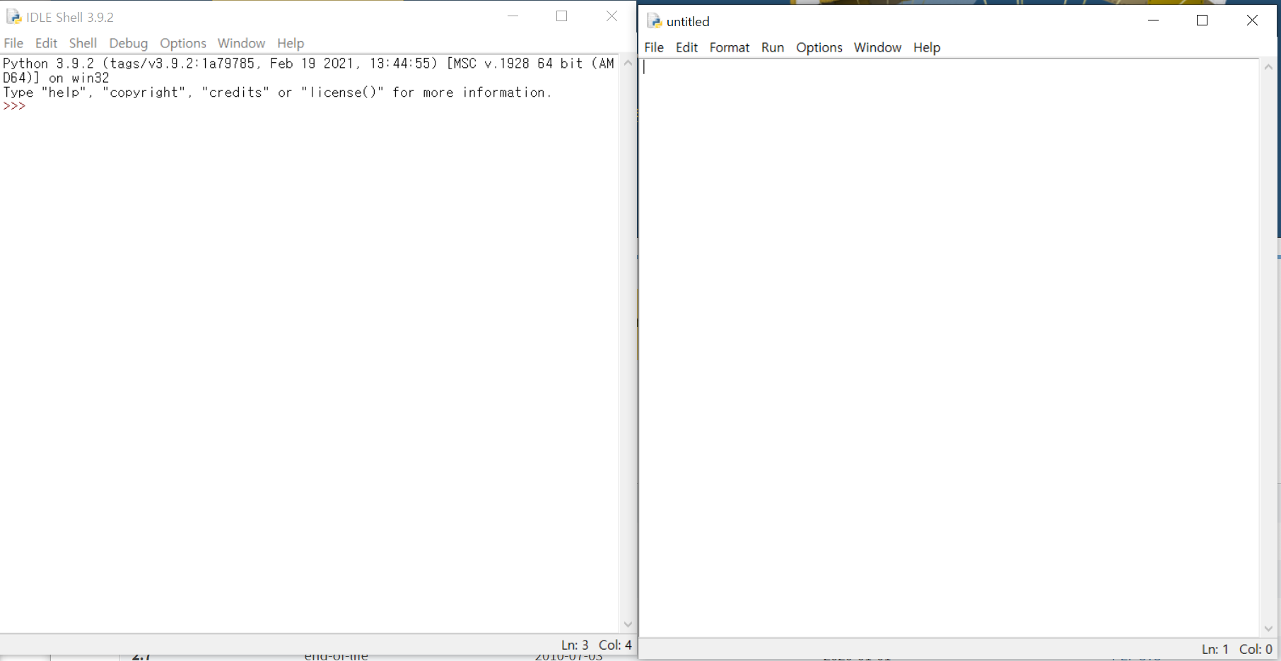 설치되면 아래와 같은 프로그램에서 작업을 합니다. (IDLE)