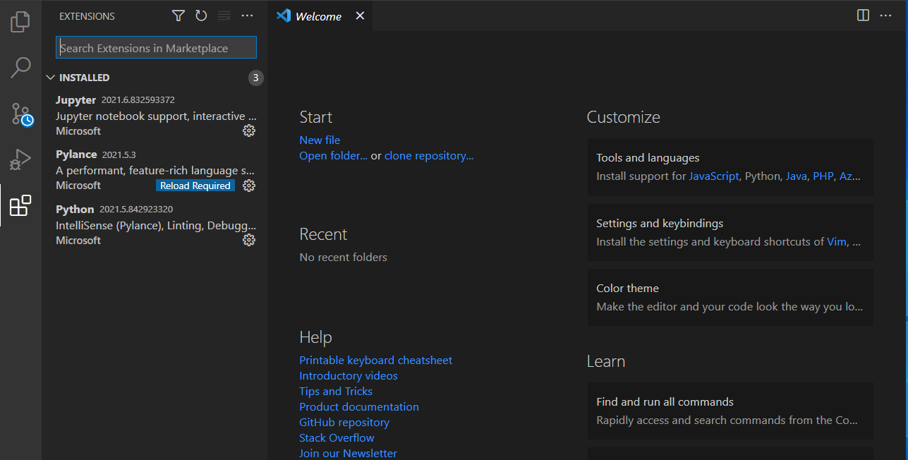 설치후 다섯번째 칸인 extension에서 python을 검색해 설치해줍니다.