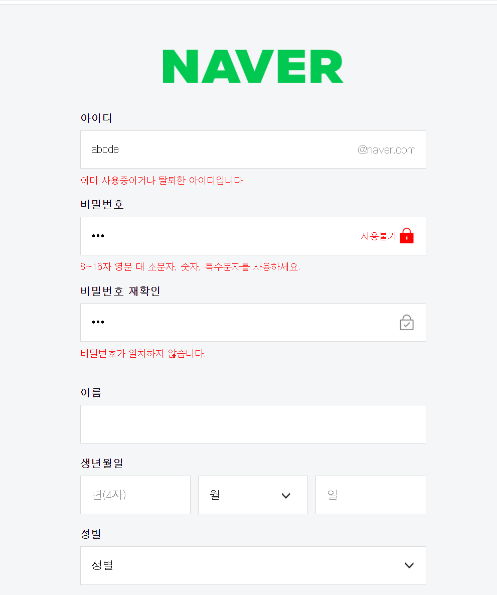 위와 같이 아이디의 중복 검사, 비밀번호 복잡성 등을 검사하는 과정을 거칩니다.