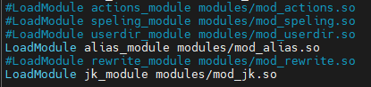 mod_jk도 로그, shm 파일 경로 설정, Worker 설정 파일 경로 설정이 필요하기 때문에 별도의 구문을 추가해야됩니다.