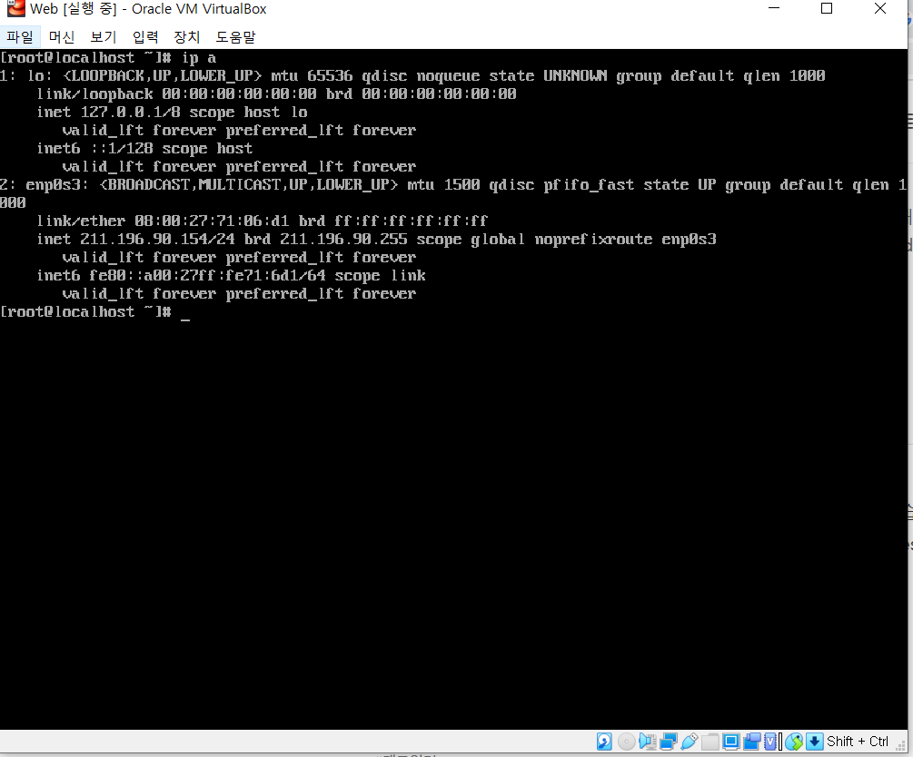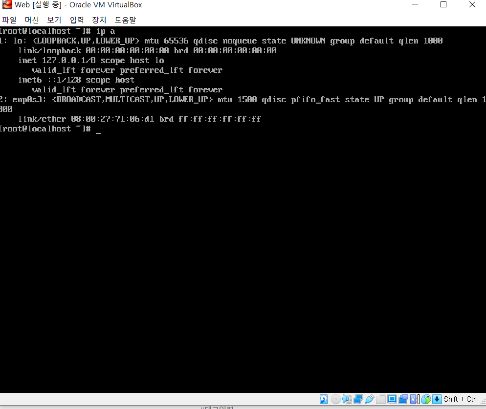 리눅스 창에서 먼저 IP가 잡혀있는지 확인합니다.