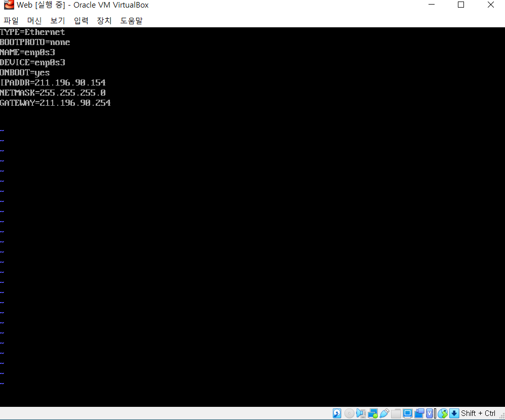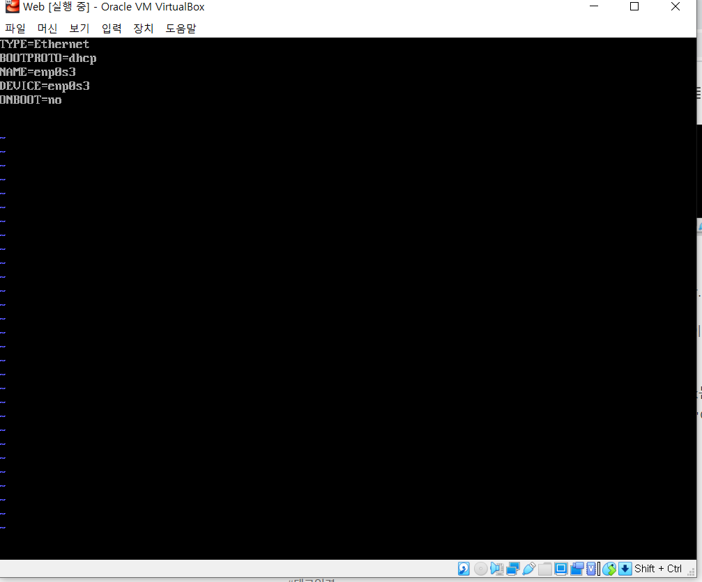 일단 원인을 찾으러 "/etc/sysconfig/network-scripts/ifcfg-enp0s3"이라는 파일을 vi 에디터로 열어줍니다.